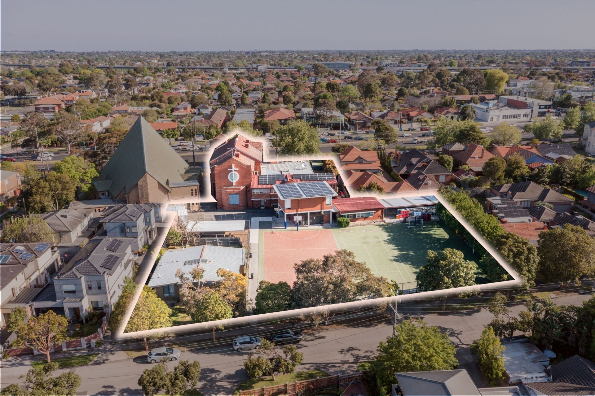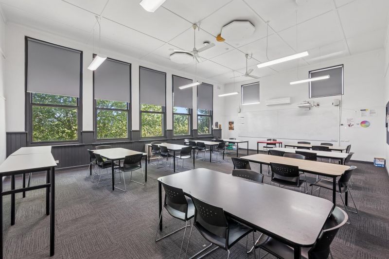 Positioned on a 5,200sqm* dual-fronted site to Dandenong Road and Goode Street, the property features a high-quality two-storey school building with a hall and eight classrooms, supported by modern administration areas and generous staff amenities.